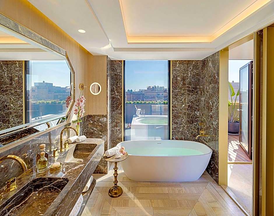 To spisesteder på stedet setter stemningen høyt over gatene: Mood Rooftop Bar kanaliserer en moderne middelhavsstemning, mens Somni serverer middelhavssmaker i en moderne atmosfære. Et sesongåpent utendørs basseng på taket forsterker panoramabildet — oppvarmet og med uendelighetskant, med separate plunge-alternativer og vidstrakt utsikt.
